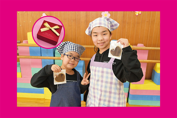 作ったチョコを持ち帰る用のオリジナルラッピングを作り♪箱を選んだら、シールを貼ったりリボンをつけたり自由にアレンジしよう★百貨店ではバレンタインのイベントを見学!お土産として好きなチョコを買おう☆