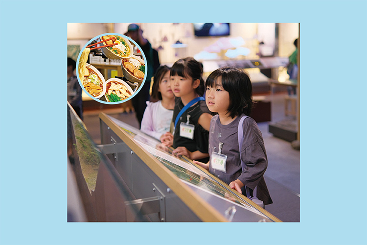 ラーメンに関する展示も見学!ラーメンにどのような歴史があるのか、どのように作るのかなど、たくさん学ぼう◆中には個性豊かなご当地ラーメンの展示も☆体験型の展示もあるので楽しみながら学べるよ◎
