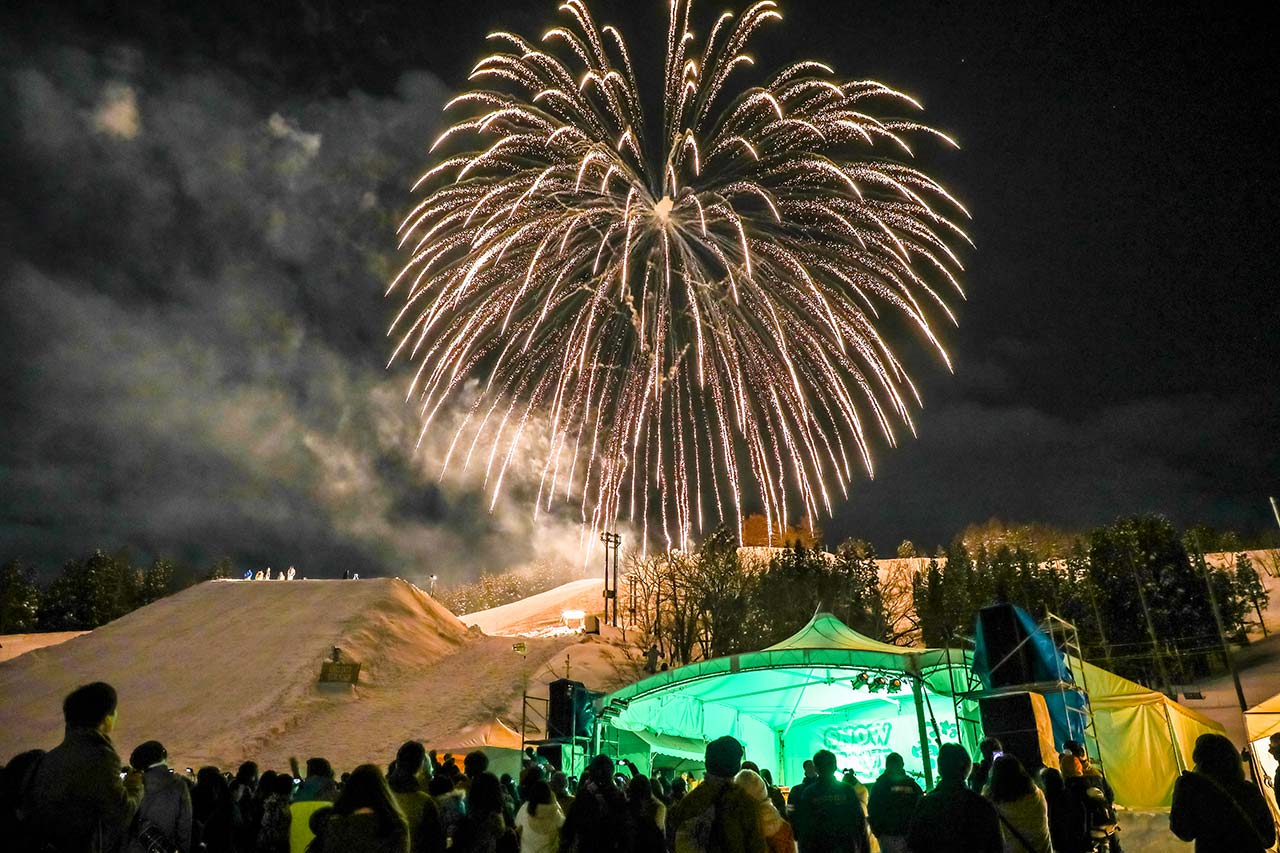 なんと!!津南ランタンの打ち上げと共に”雪上打ち上げ花火”の開催が決定しました◎津南ランタンと冬の花火!2つの夜空を彩る光の幻想を味わおう◎白銀の世界と暗闇に輝く姿は貴重な体験になること間違いなし♪ -