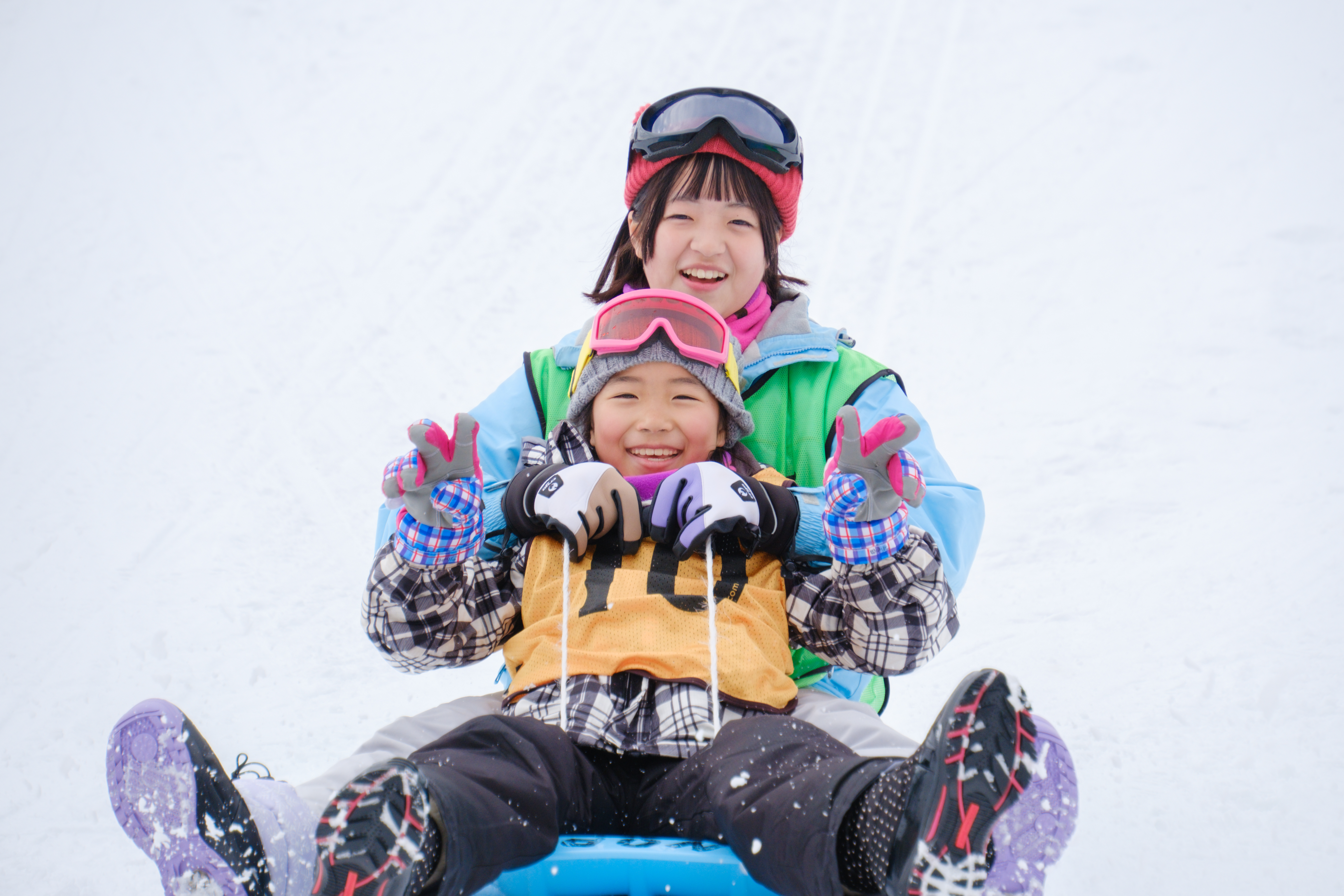 雪が豊富な新潟県津南町のふわふわ雪で雪遊びも大満喫!そり遊びでは1人乗りやお友だちとの2人乗りもしてみよう◎バランスを崩さず上手に滑りきることはできるかな?雪だるま作りなど雪での遊び方は無限大です♪ -
