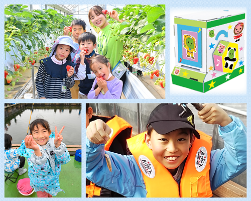 甘くておいしい、いちご狩り&ストロベリータルト作りを楽しみます。また、カード販売機や販売機に入れるカードも作ってみよう!☆他にもわかさぎ釣りを楽しむ冬のフィッシングツアーもあるよ♪どのツアーにするかいっぱい考えてみてね☆