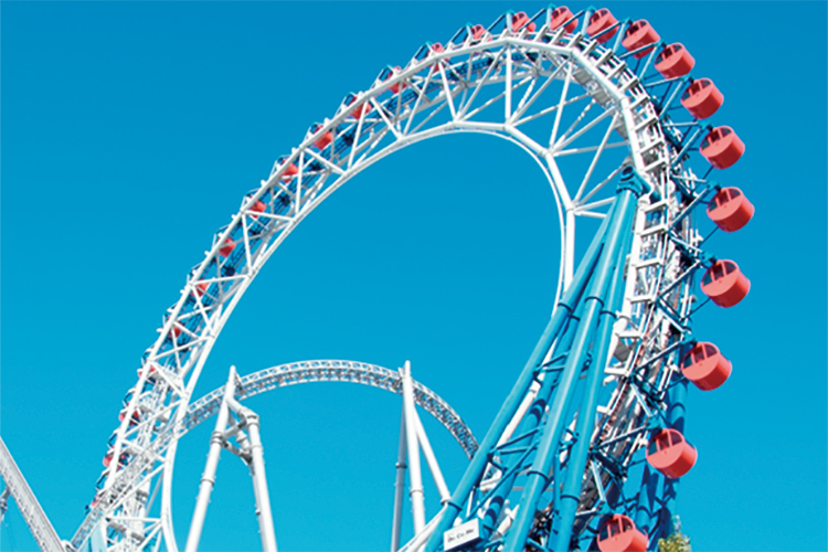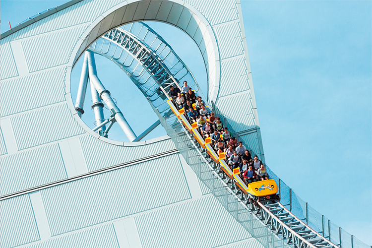 東京ドームシティアトラクションズの一番人気は巨大ジェットコースター「サンダードルフィン」★都会のビル群を駆け抜ける、ドキドキ・ワクワクの疾走感!突然のありえない角度での急降下は、スリル満点の体験です◎ -