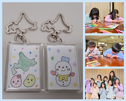 絵を描いたり、色を塗ったりして自分だけのキーホルダーを作ろう☆北海道のチャームがついているよ♪できあがったらかばんにつけてみよう☆ -