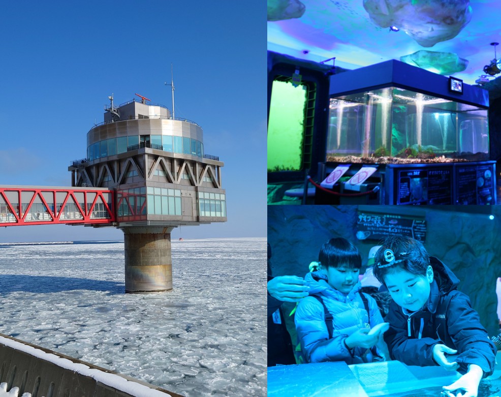 昨年は行かなかった氷海展望塔”オホーツクタワー”へ!展望塔ななんと流氷の下に続いています♪海底階から流氷の下の海を覗いてみよう◎氷点下タッチプールやミニ水族館も見学★アザラシランドにはたくさんのアザラシが暮らしているよ♪ -