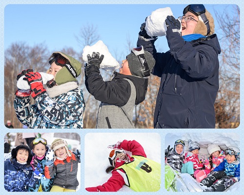 北海道の雪は、他の寒い地域と比べてサラサラとしたパウダースノーが特徴です☆雪の上で寝そべったり、ふかふかの雪にダイブしたり、雪だるま作りや雪合戦、雪上宝探しをたっぷり楽しもう◎ -