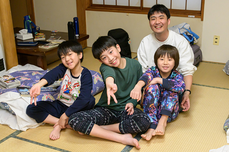 - 大丈夫です。同性のお友だちで、同じ日程・集合・解散場所でしたら、一緒の『生活班(食事・風呂・移動・部屋が一緒の班)』に編成させていただきます。レッスンは全員全日マンツーマンなので一緒の班には編成できませんのでご了承ください。