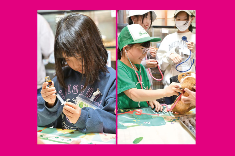 動物園で獣医のお仕事を体験!聴診器をあててお薬を吸い上げて、気分は本物の獣医さん☆ANIMAの魅力は近い距離で動物とふれあえること◎モルモットやウサギなど、様々な動物と心ゆくまでふれあおう♪ -