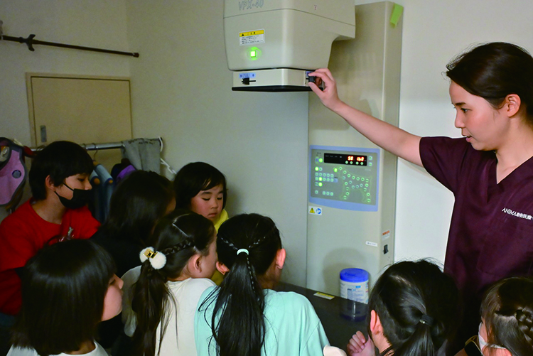 動物病院で診察に挑戦★10名限定なので、獣医さんに密に教わりながら体験できるよ◎レントゲンを分析したり触診・聴診・視診をしてみたり、実際の流れで診察します♪本物の器具を使って楽しくお仕事を学ぼう◎ -