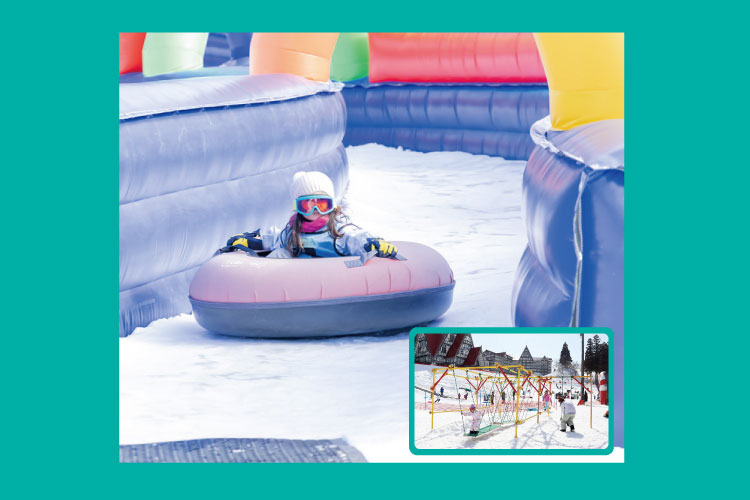 子ども専用の雪遊びゲレンデ『キッズパラダイス』で雪遊びを満喫♪ふわふわ遊具や雪上アスレチック、雪上ブランコやスノーチュービングなど遊び遊具がたくさんあるよ◎2日間たっぷり雪遊びを楽しもう★ -
