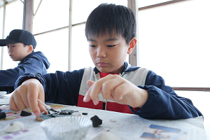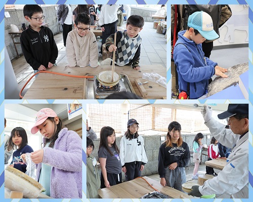 海洋や塩について知ることのできる科学館の見学を行います。塩がどうやってできるのか学ぼう♪また、塩づくりにも挑戦!瀬戸内海は日本有数の塩の名産地!海水を煮詰めて、しっかり混ぜながら塩を作ります。完成した塩は、おみやげにお持ち帰りします♪ -