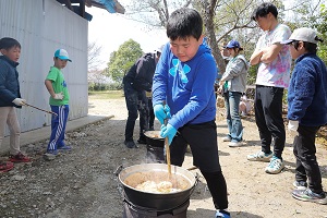 地元の食材を使って、おいしい料理を作りましょう!野菜を切ったり、皮をむいたり、火をおこしたり、食材をまぜたり… 班で分担しながら完成させます。大きな海を背にしてアウトドアクッキングをする気分は最高♪料理が完成したら、海を見ながら食べよう! -