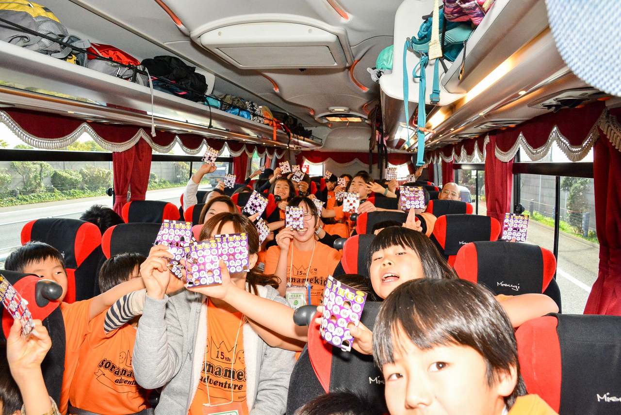親子・家族参加の方々ですのでバス車内もご安心ください!お子様に慣れたスタッフが同行し、移動中には皆でレクリエーションも実施します★大人の皆さんも是非一緒にご参加くださいませ☆