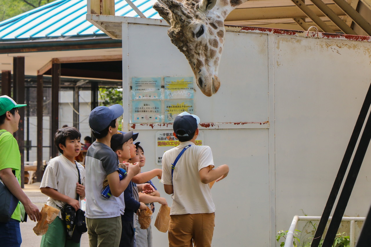 ゾウやキリン、サル等様々な動物が生活しているよ★近づいてエサやりをしてみよう!動物たちは、普段どのような食べ物を食べているのかな?量はどのくらいかな?実際に調べてみよう◎