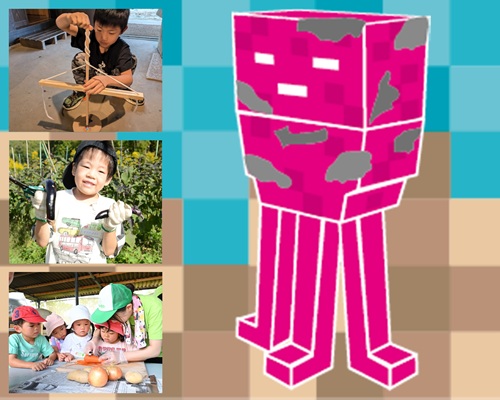 大人気ブロックを使ったゲームの実写版♪自然の中でさまざまな材料を集め、モンスターから出されるミッションに挑戦したり、時には対決したり、人気ゲームと現実の体験を融合させた冒険に出発◎遊びながら生きる技術を身につけ、楽しく体験しながら学んでいくよ☆春休みの思い出作りに、ぜひお友達と参加してみてね!!
