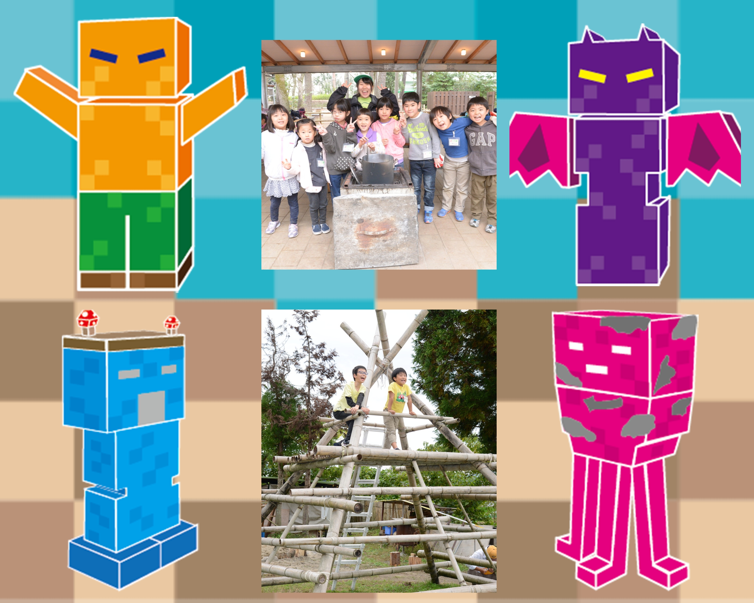 大人気ブロックを使ったゲームの実写版♪自然の中でさまざまな材料を集め、モンスターから出されるミッションに挑戦したり、時には対決したり、人気ゲームと現実の体験を融合させた冒険に出発◎遊びながら生きる技術を身につけ、楽しく体験しながら学んでいくよ☆春休みの思い出作りに、ぜひお友達と参加してみてね!!