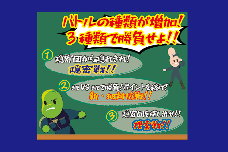 バトルルールは“捜索戦”と“隠密戦”と“班対抗戦”の3種類!