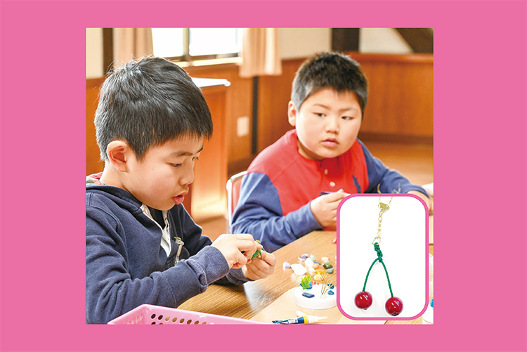 世界に1つ!オリジナルのさくらんぼキーホルダー作り◇ひもにパーツを取り付けよう♪ボンドを使って作るので、誰でも簡単に作ることができるよ◎作ったキーホルダーはお持ち帰り!思い出を形に残そう☆