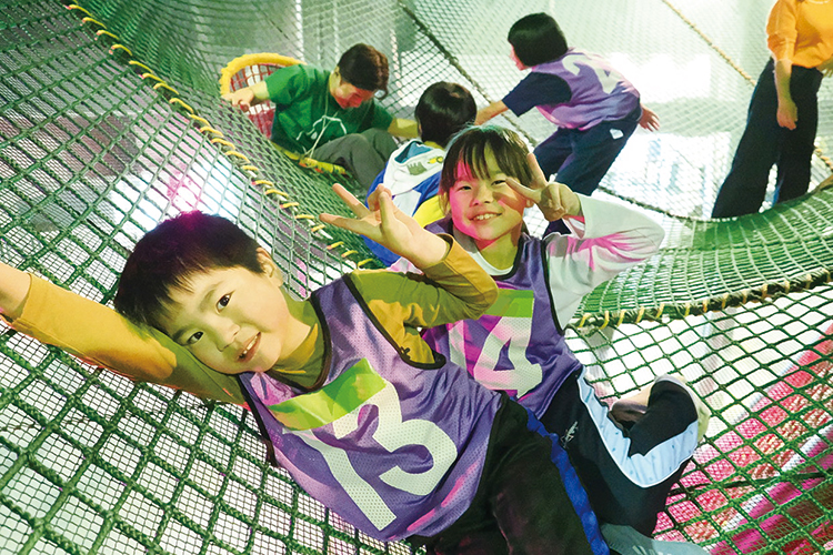 『笛吹川フルーツ公園』の中にあるわんぱくドームを満喫★天候に左右されずに楽しむことができる、屋内ネットアスレチックです◇フルーツスロットなどのゲームもできる『くだもの館』で遊びながら楽しく学ぼう♪ -