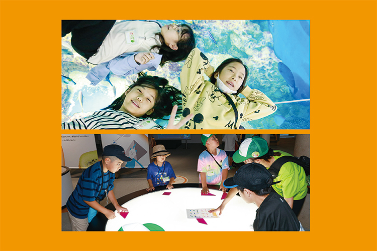 水族館では大迫力のイルカショーを鑑賞!かわいい海の生き物もたっぷり見学★科学館ではデジタルと融合した展示や錯覚を使用した展示がたくさんあるよ◎リゾートホテルでは温泉と豪華バイキングを大満喫♪