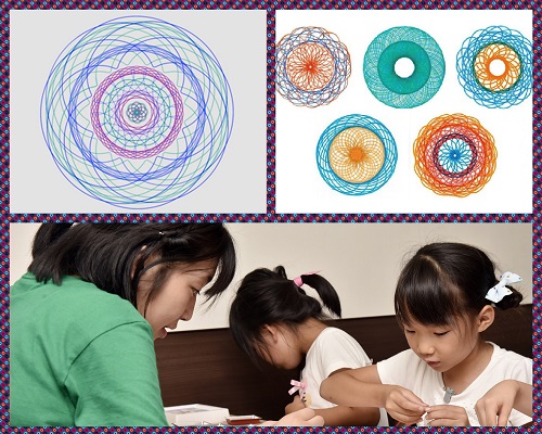 ペンを取り付けるアームの長さや、ペンの色を変えてオリジナル曲線アート作品を作りましょう☆