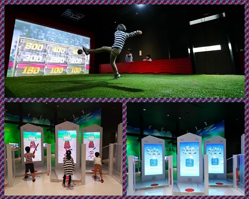 フットボールチャレンジ…パスを上手に受けて高得点を目指します。ゴールに向かって思いっきりシュートをしましょう! -