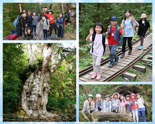 | プログラム | 《屋久島・種子島》 ●縄文杉トレッキング ●種子島宇宙科学技術館 ●白谷雲水峡トレッキング ●シュノーケリング ●ウミガメ館 ●猿川ガジュマル遊び ●ナイトツアー ●鉄砲館《奄美大島》 ●コウトリビーチ上陸&シュノーケリング ●マングローブカヌー ●ナイトツアー ●泥染体験 ●大自然の中でキャンプ体験 ●ご当地グルメ満喫 ●思い出のフォトフレーム作り 《与論島・沖縄本島》 ●百合ヶ浜上陸 ●ウミガメシュノーケリング ●沖縄本島ホテルプール ●美ら海水族館 ●沖縄グルメバイキング ●リゾートホテル満喫 ●メモリーバッグ作り ●シーサー作り体験 ●お土産タイム |