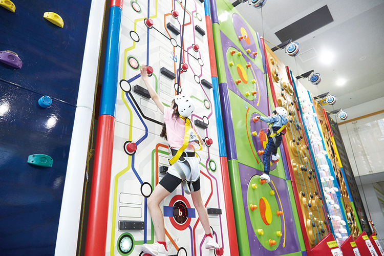 最大10m!難易度の異なる14種類19コースのクライミングにも挑戦★最新デジタル技術を使用したエリアでは、投影される“崩れる床”の映像を見ながら落ちないように移動するゲームなどお楽しみが盛りだくさん◎ -