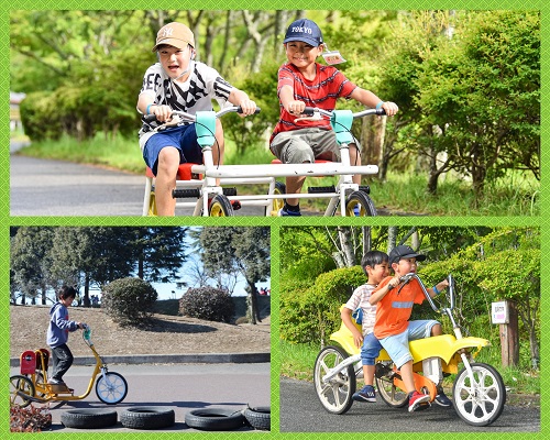 | プログラム | ●サイクリングコース挑戦 ●変わり種自転車体験 ●アウトドアクッキング ●リッキー・リンリン「森の立体迷路」挑戦 ●アトラクション体験 ●コテージ宿泊 |