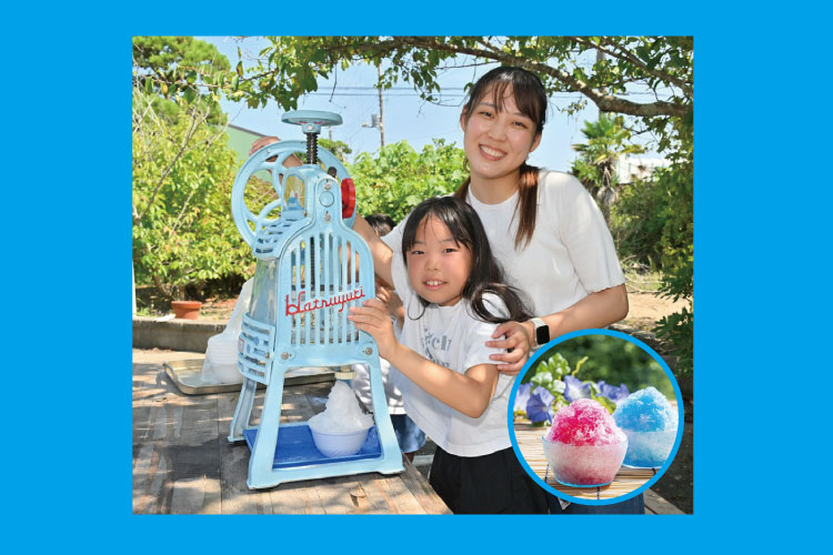 夏ならではのかき氷作りに挑戦!天然水からできた純氷を使うので、食感はふわふわです◎手のひらに収まらないほど大きな氷をガリガリ削っておいしく作ることができるかな?最後はシロップをかけていただきます♪