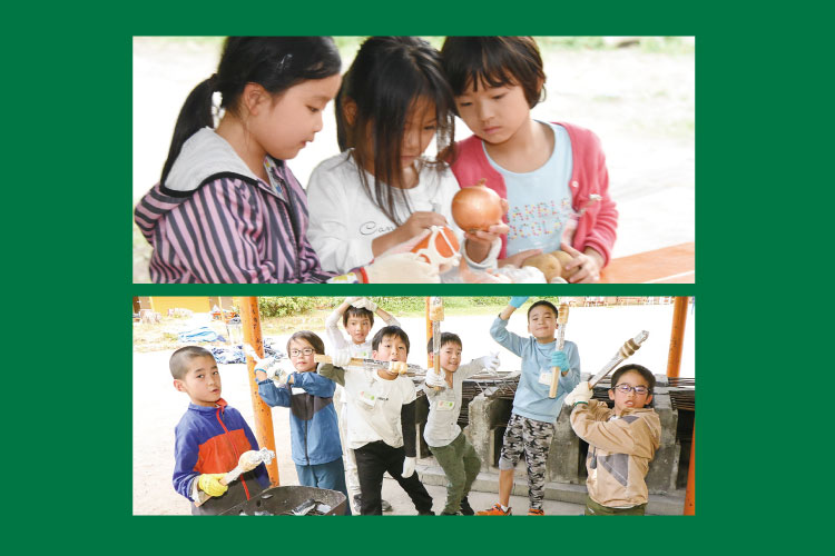 - 小1で初めて参加しました。同じ班に小3が2人、小1が4人で、濃い4日間が過ごせたようです。秘密基地では、ブランコやすべり台も作ったと話していました。都会では体験できない経験をし、たくましく思いました。