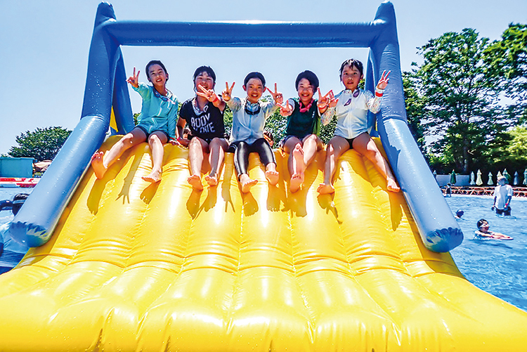 あつ~い夏にはプール遊び!!「ウォーターランドぷるぷる」には、巨大フロートやすべり台フロートなどのゆらゆら揺れる遊具がたくさんあるよ◎もぐったり、プカプカ浮かんだり様々な遊び方で楽しもう♪