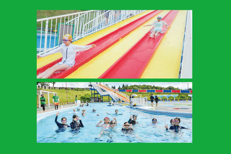 流れるプールやウォータースライダーがあるプールでもたくさん遊ぼう!直線スライダーは滑り方でスピードが変わるよ◎どうやって滑ったら早く滑れるかな?斑尾高原で集めたクラフト工作にも挑戦しよう♪