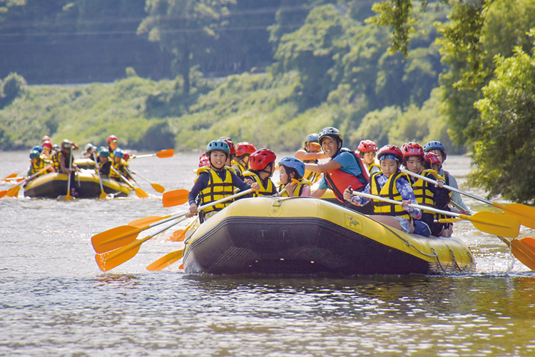 全長214kmの川の一部を下る「千曲川ラフティング」にも挑戦!夏の時期にぴったりのひんやりウォーターアクティビティを満喫しよう★ラフティングが終わったら温泉に入って頑張った身体を癒します◎ -