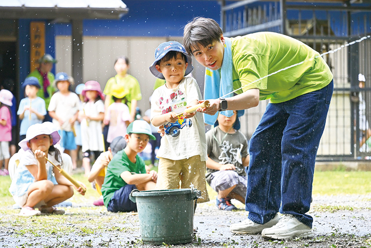 竹で水を押し出す“竹水鉄砲”も作るよ◎完成したら的当てゲームに挑戦◇たっぷり水を入れて狙いを定めて、目指せ高得点!ゲーム形式で飛距離や得点なども競おう◎お持ち帰りOKなので、おうちでも遊べるよ♪