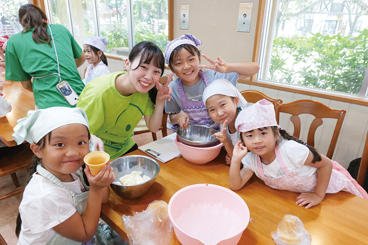 牛乳や卵などの材料をクルクル混ぜて手作りアイスクリーム作りにも挑戦♪ひんやり冷たいアイスクリームは暑い夏にぴったりです◎中身が固まってきたら、コーンにのせてその場でおいしくいただきます! -