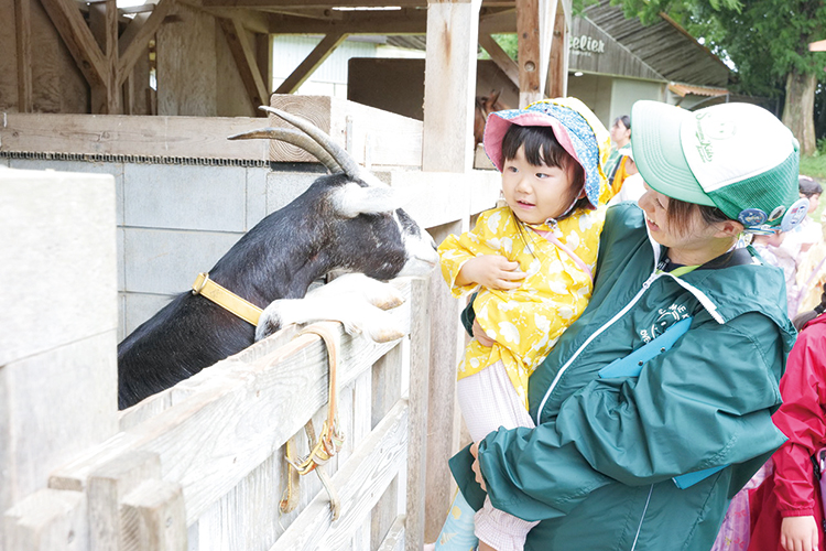ヤギやヒツジなどの動物ふれあいにも出発◎それぞれどんな手ざわりかな!?モフモフ?サラサラ?それともゴワゴワ?動物ごとにちがう手ざわりを確かめてみよう♪優しくそーっと触れるのがコツです◇