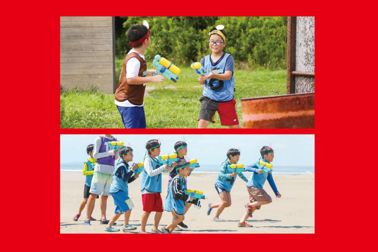 ひんやり涼しい“ウォーターサバゲー”開幕!水鉄砲を使って、相手の頭についたポイを打ち破れ♪舞台はサバイバルゲームフィールドと砂浜◎障害物やエリアの形など、フィールドの特性を生かして勝利を掴め★ -