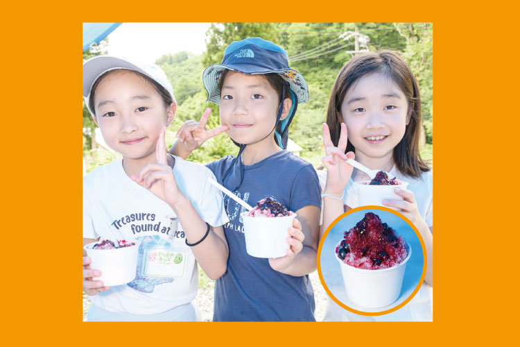 甘酸っぱいブルーベリーはなんと食べ放題◎自分たちで狩ったブルーベリーを使ってかき氷シロップも作ります♪紫色に輝くブルーベリーシロップをふんだんにかけたひんやり冷たいかき氷はおいしいことまちがいなし★