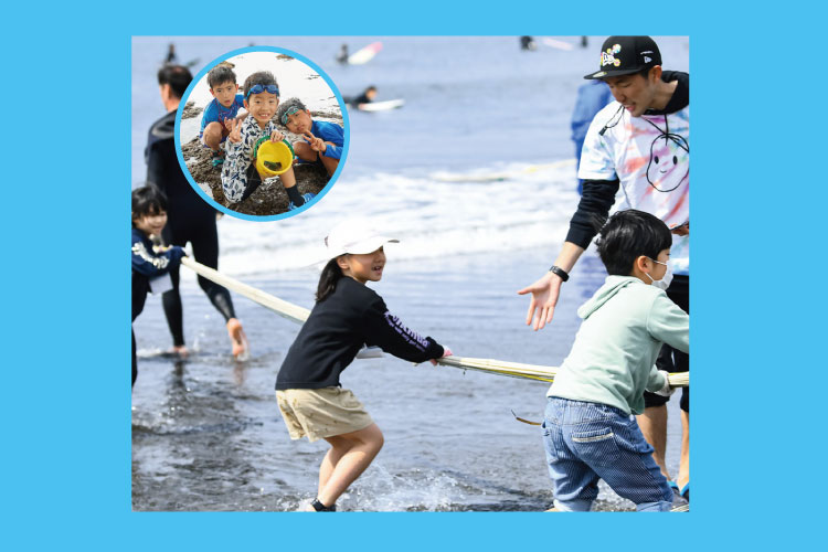 地引網体験やカニ釣り体験などの自然体験もするよ◎みんなで力を合わせて、一斉に網を引っ張ります!夜には、楽しいキャンプファイヤーをして、お友だちとの絆を深めよう★ドラム缶ピザ作りやクラフト工作も行うよ♪ -