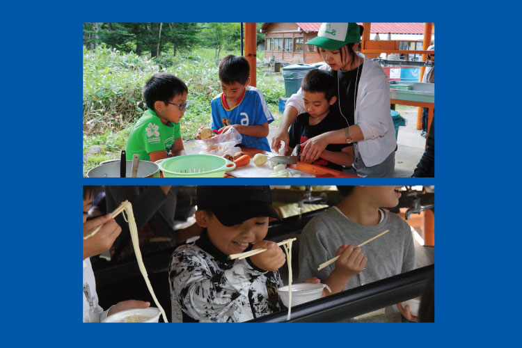 - 初めて参加しました。一人っ子なので、色んな学年のお友達と一緒に協力し合うことができ、とてもいい経験になりました。個人の旅行ではなかなかできないプログラムなのでありがたいです。普段おとなしい子ですが帰宅途中からキャンプでの出来事をたくさん話してくれました。